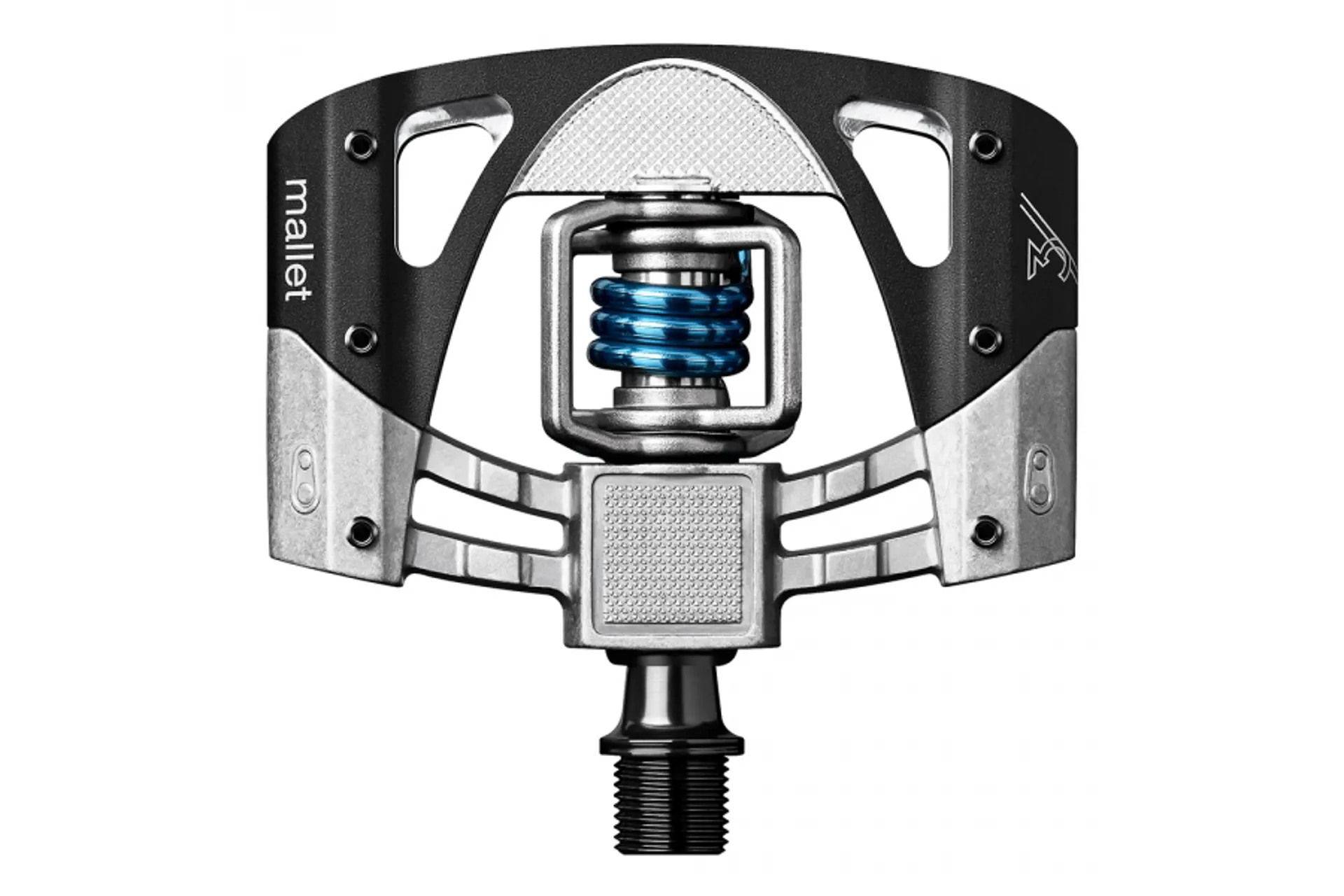 Mallet pedals feature a double sided open design allowing for quick and reliable engagement with minimal mud clogging.